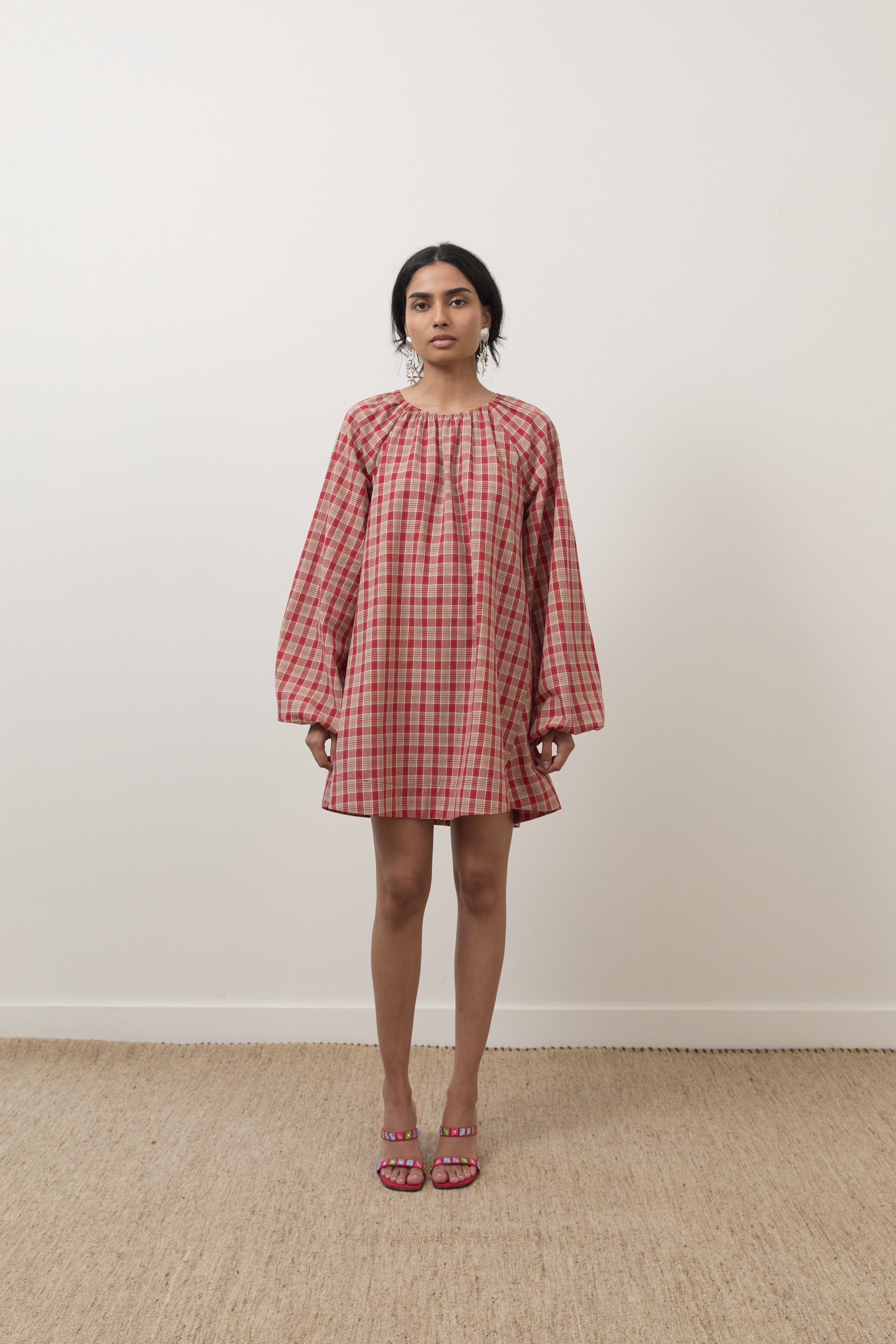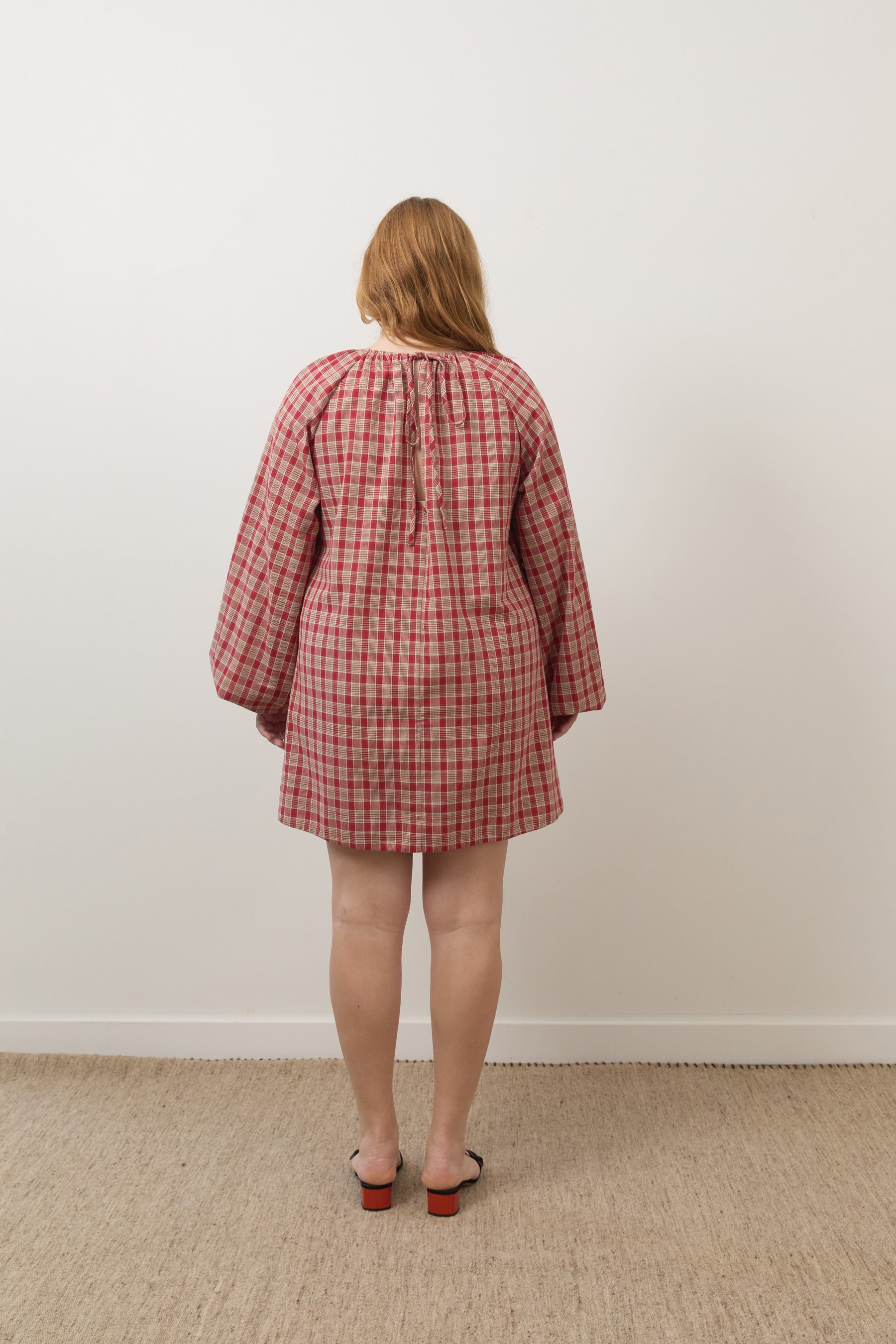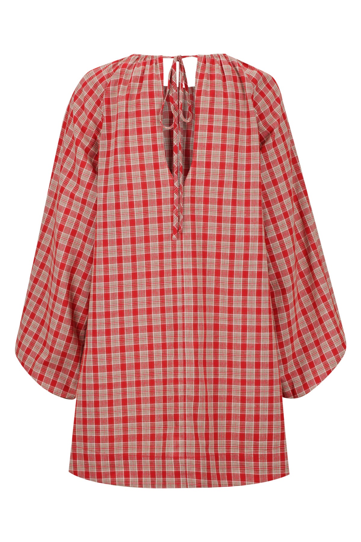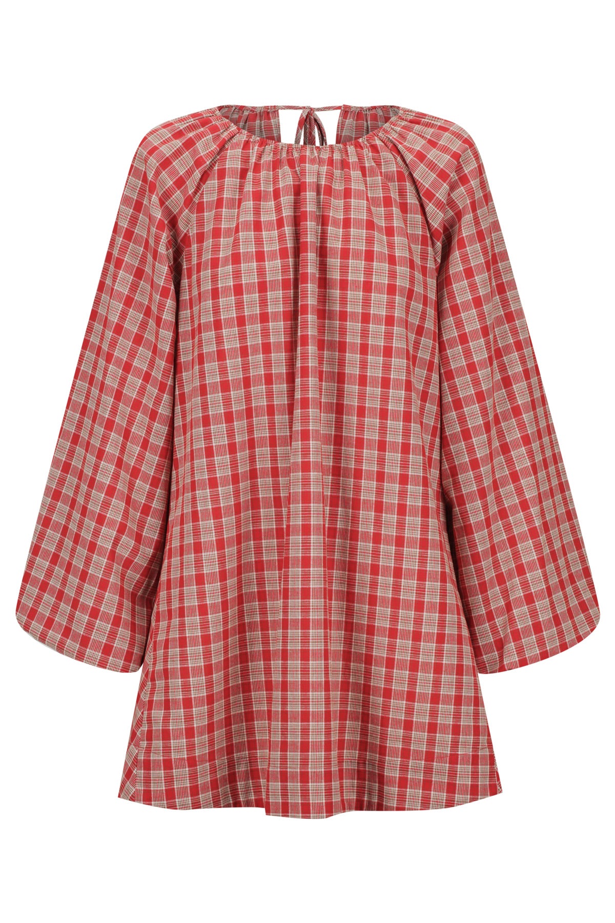 Features elasticated neckline and cuffs, with a self tie at the back.