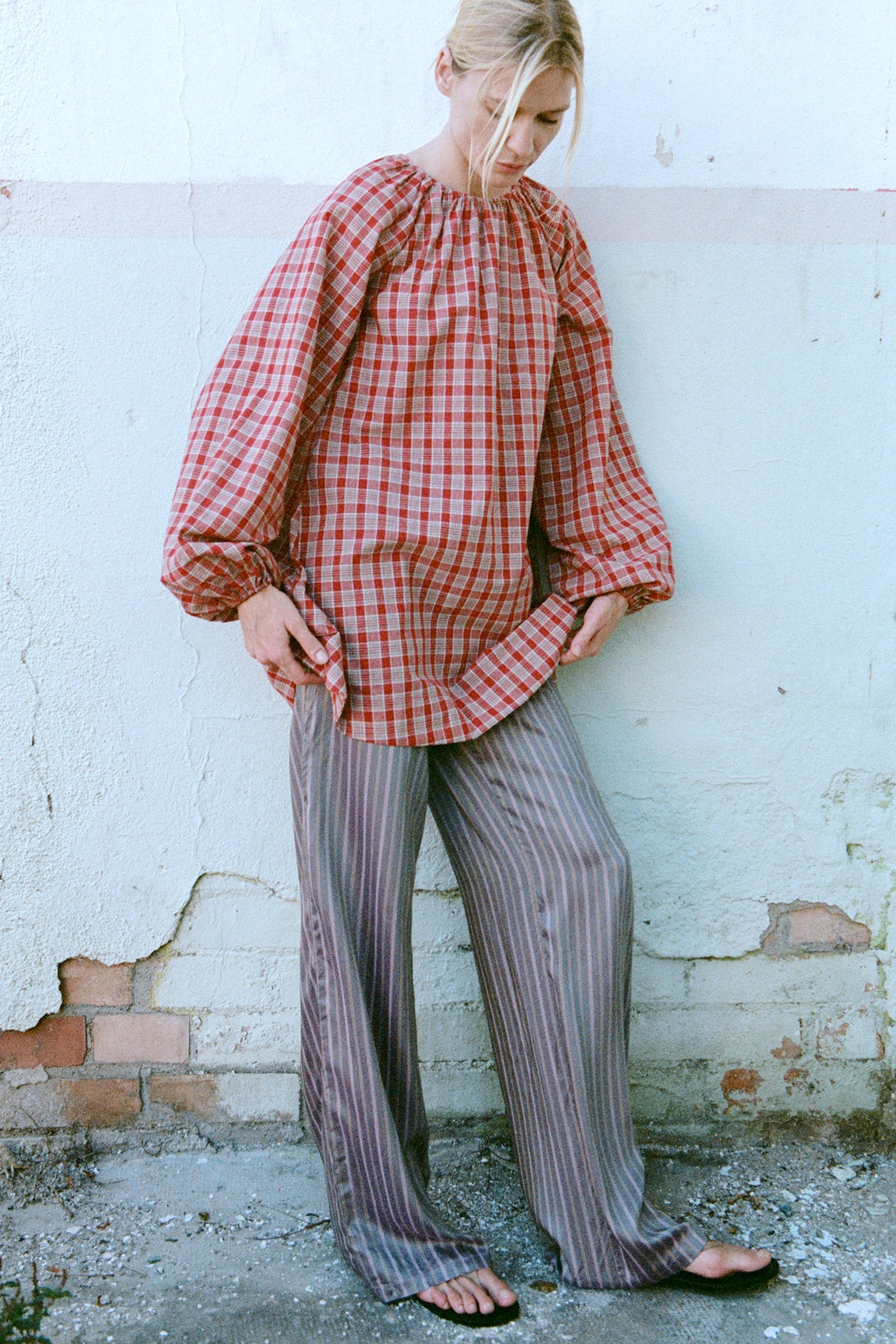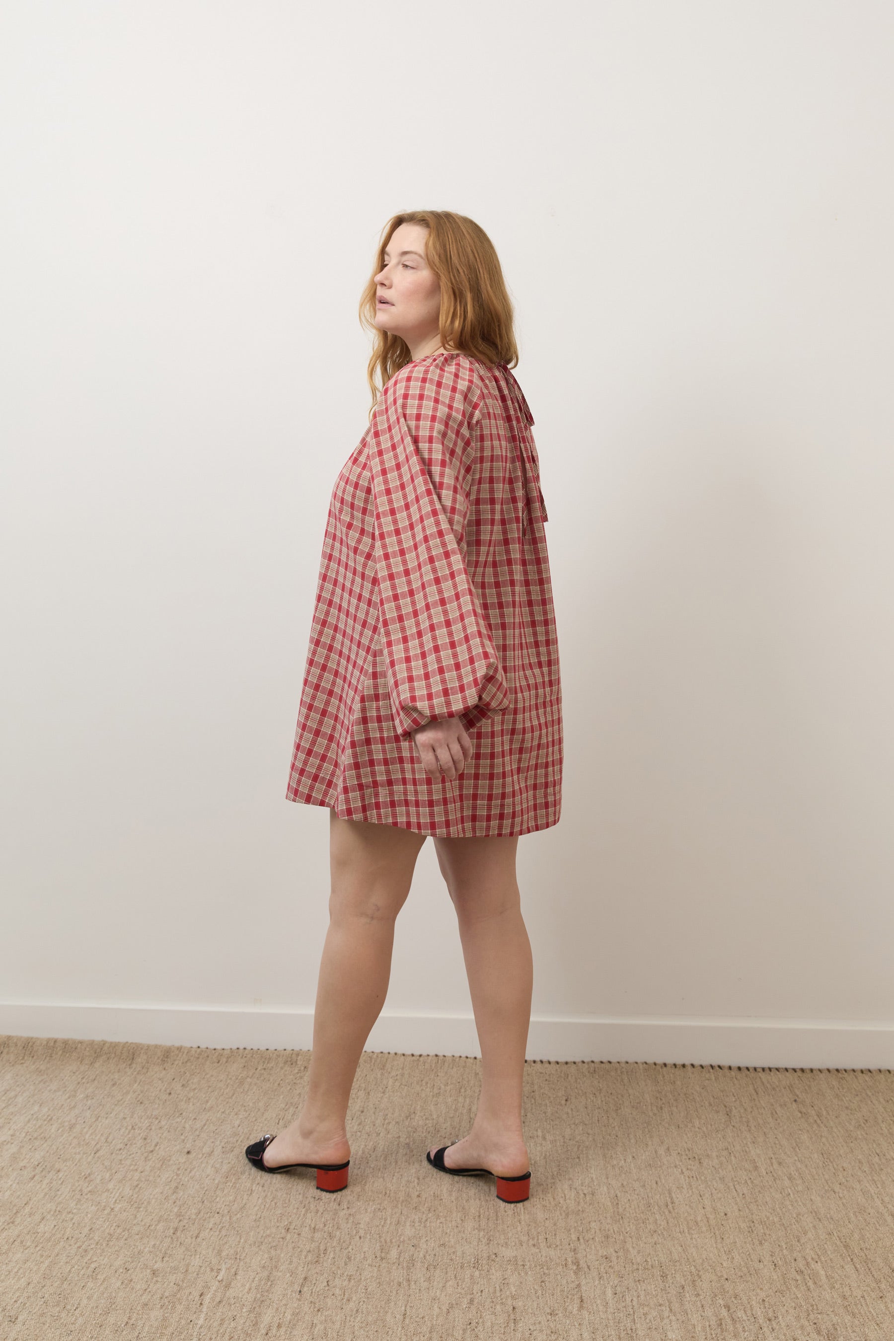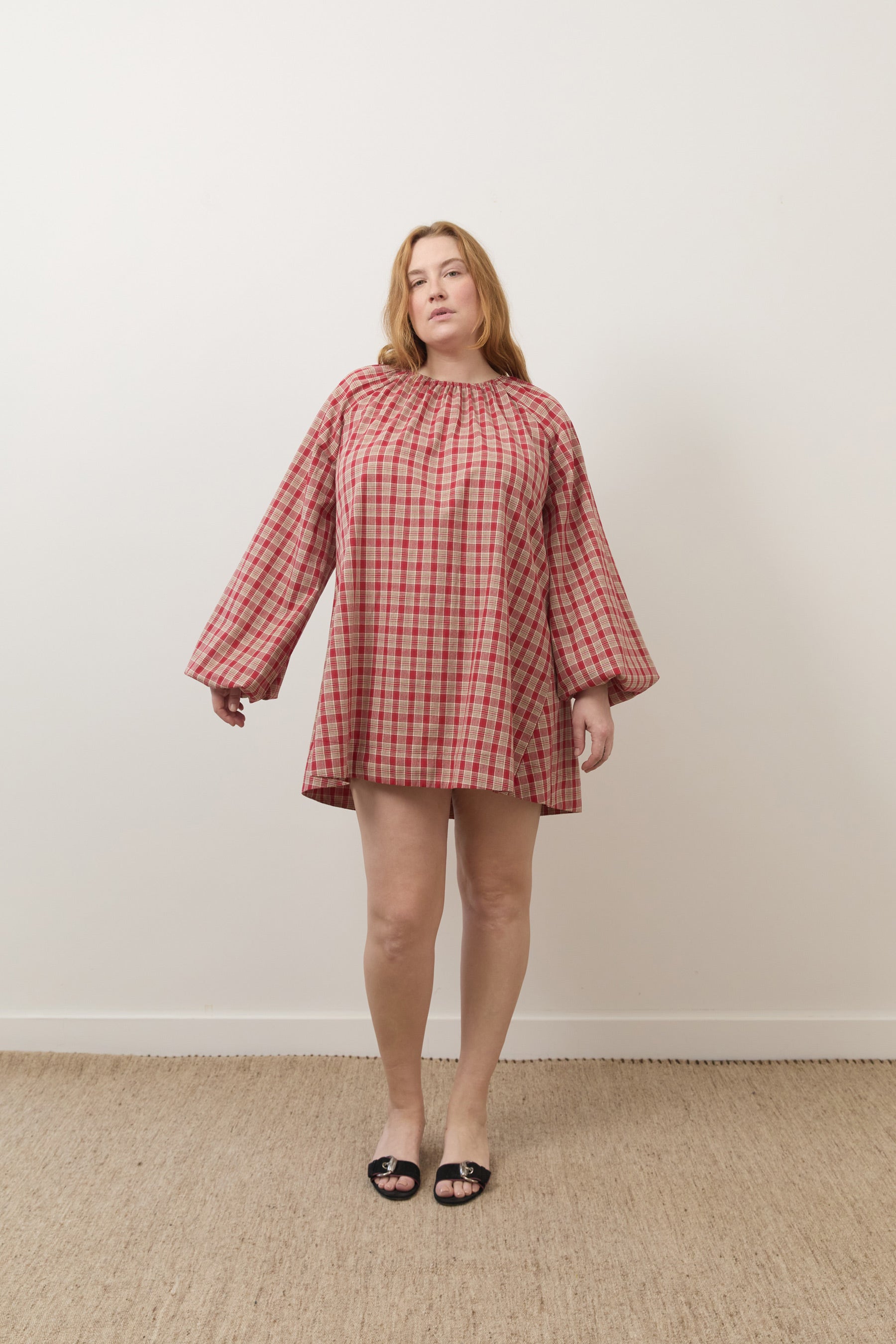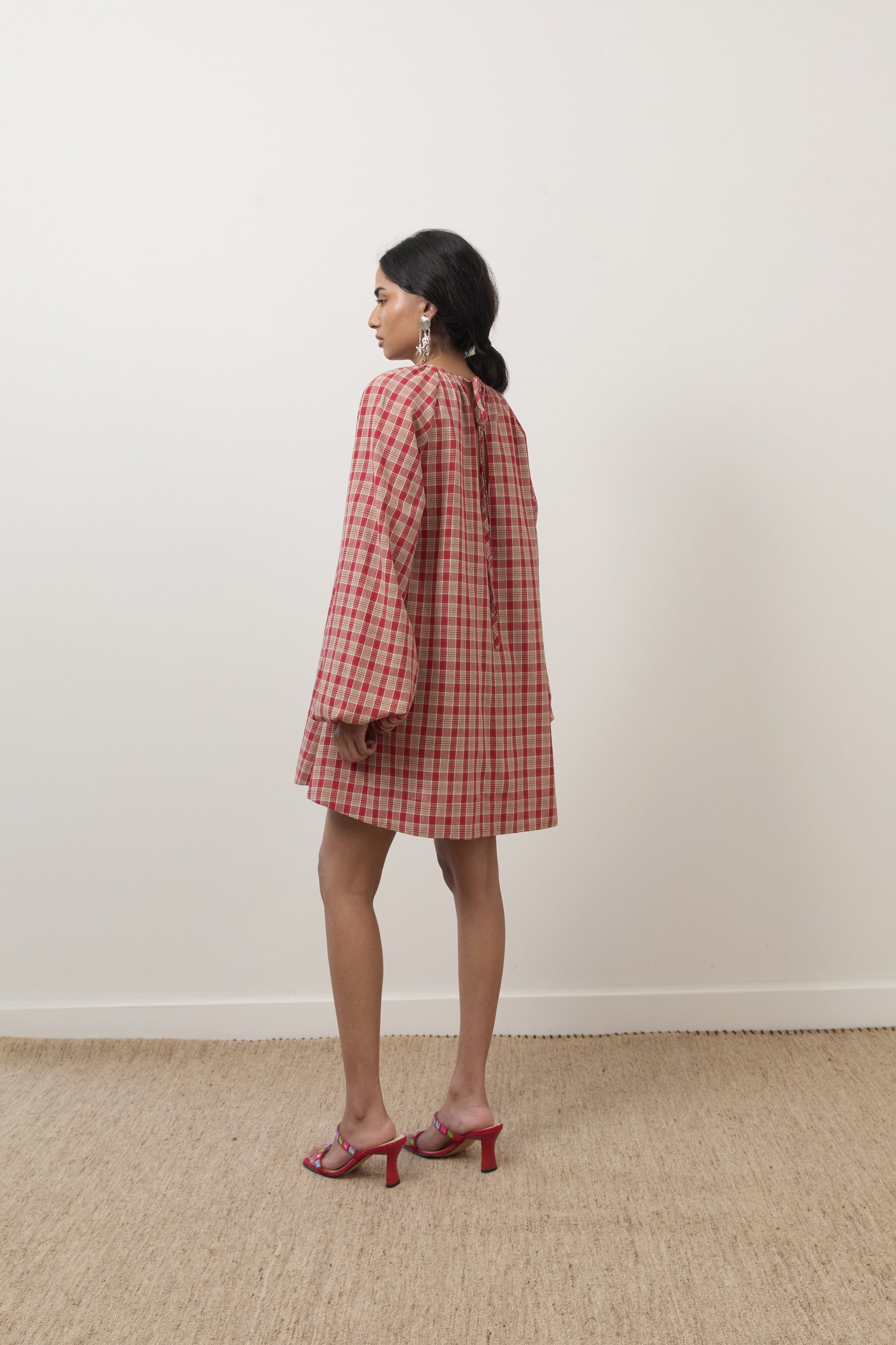 Features elasticated neckline and cuffs, with a self tie at the back.