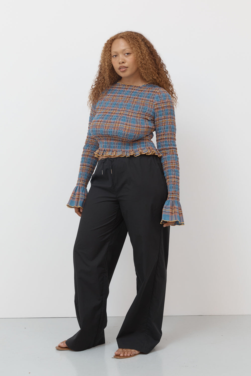 Made from a mid weight brushed 100% deadstock cotton flannel plaid.