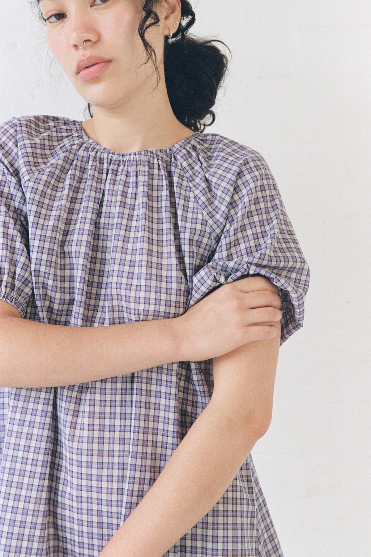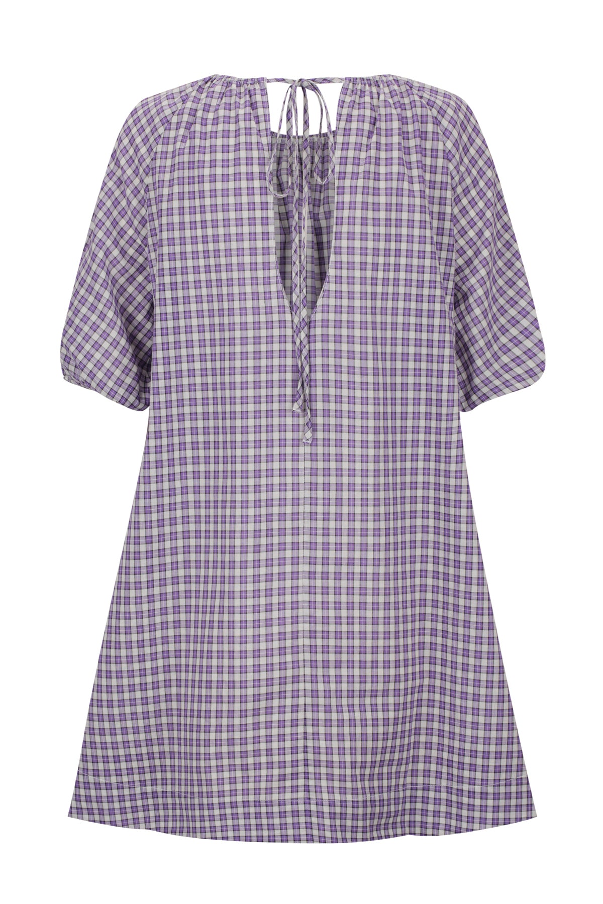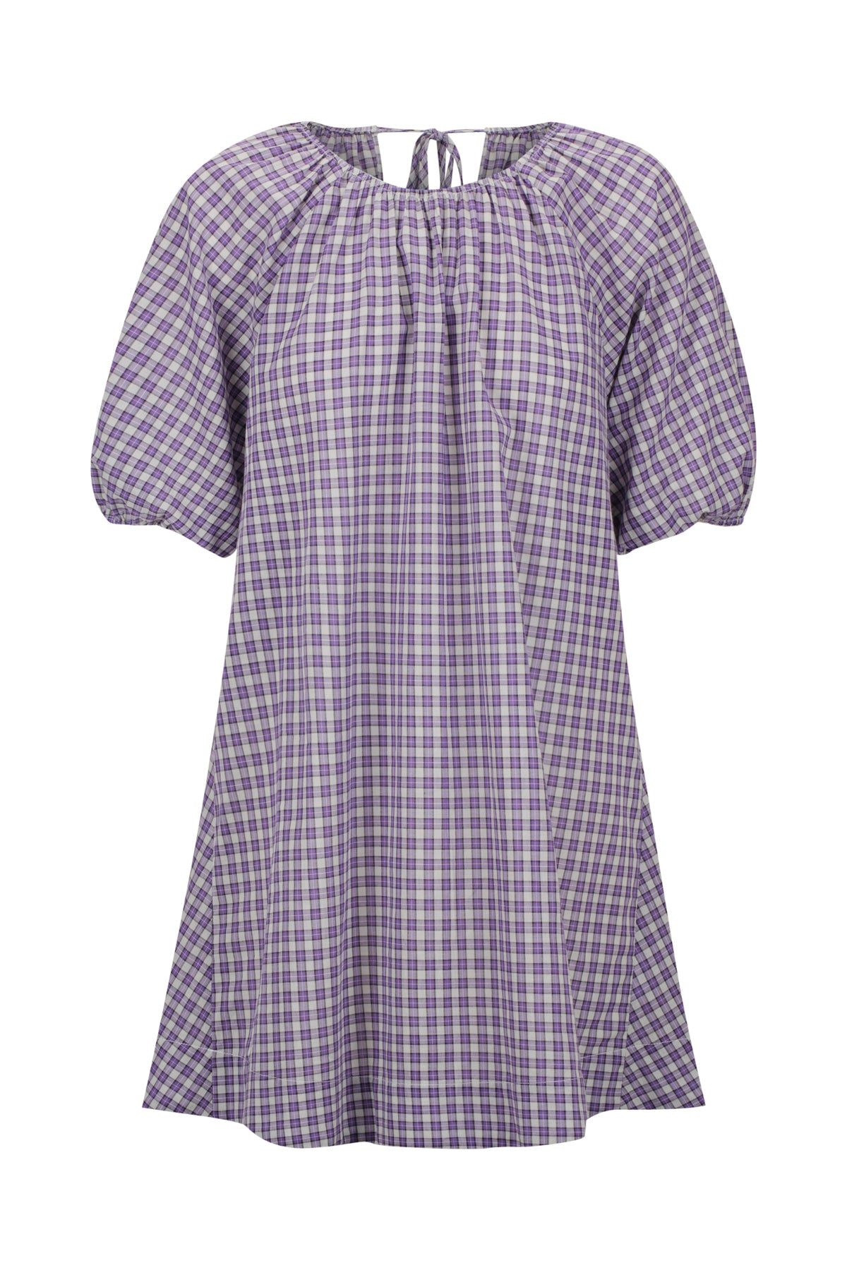 Lightweight raglan mini dress with short sleeves in 100% cotton plaid.
