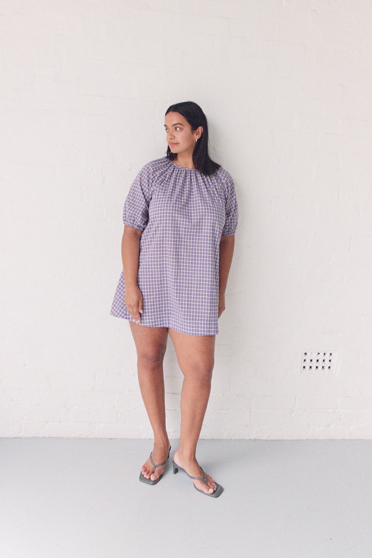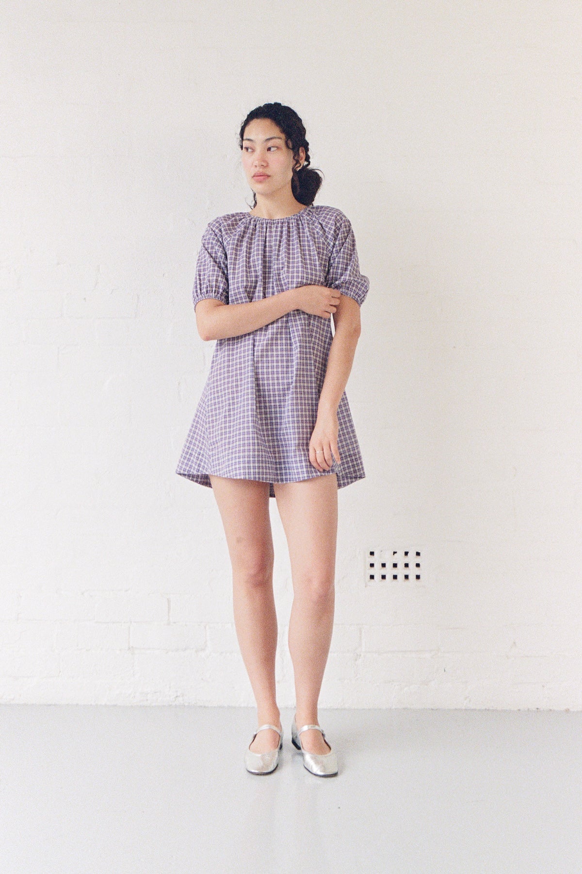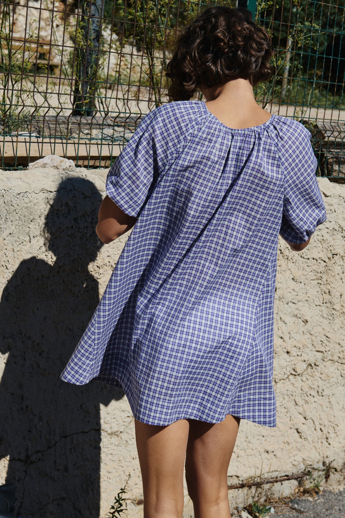 Lightweight raglan mini dress with short sleeves in 100% cotton plaid.